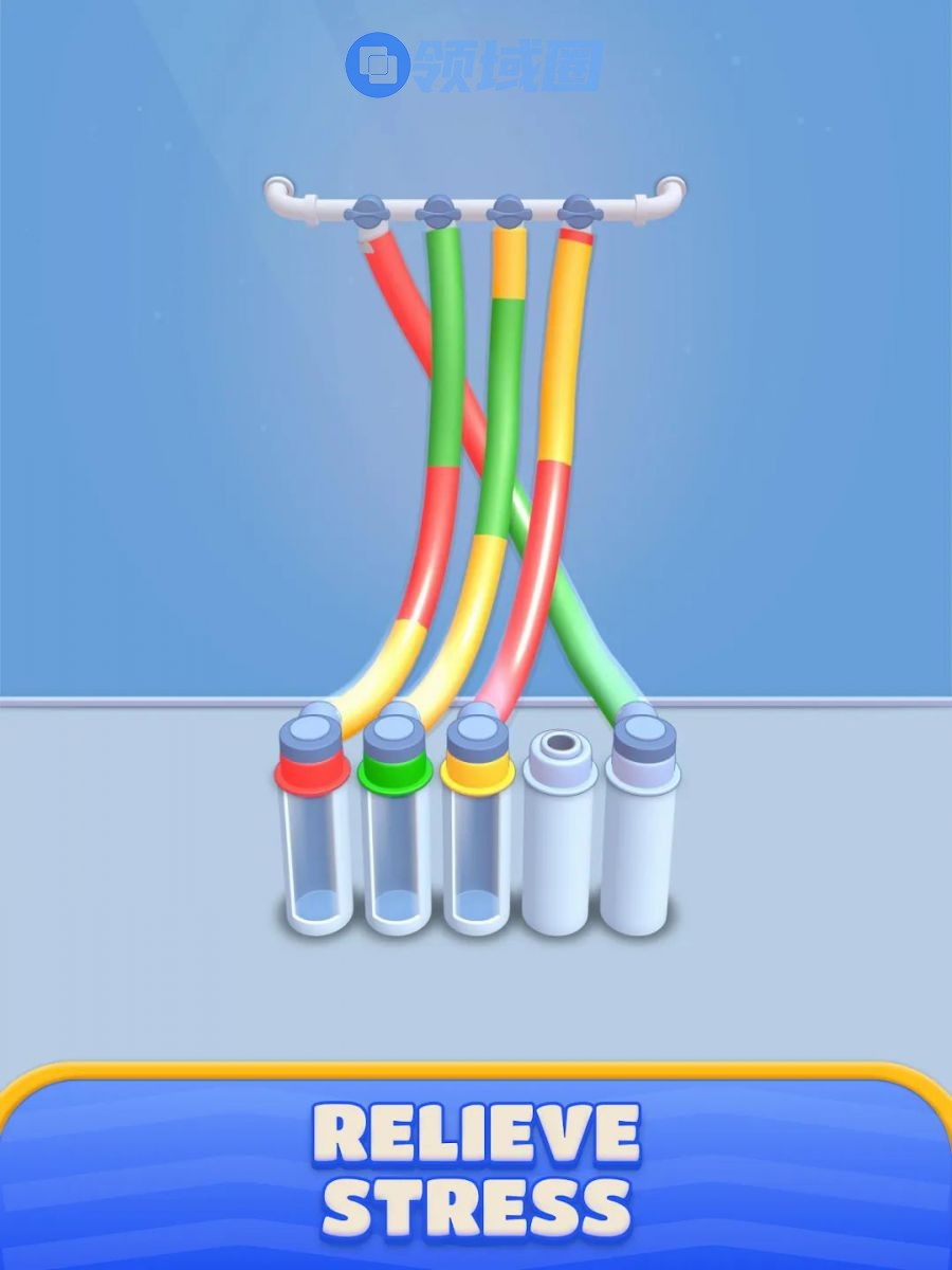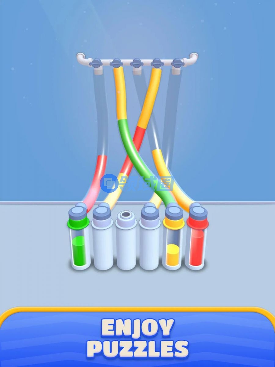 介绍:把水排序和物理软绳子做了融合,不同颜色的软管,需要将对应颜色的颜料注入到对应颜色的试管中。其实是用彩色试管对软绳进行了关卡目标的限制,属于比较合理的玩法组合。