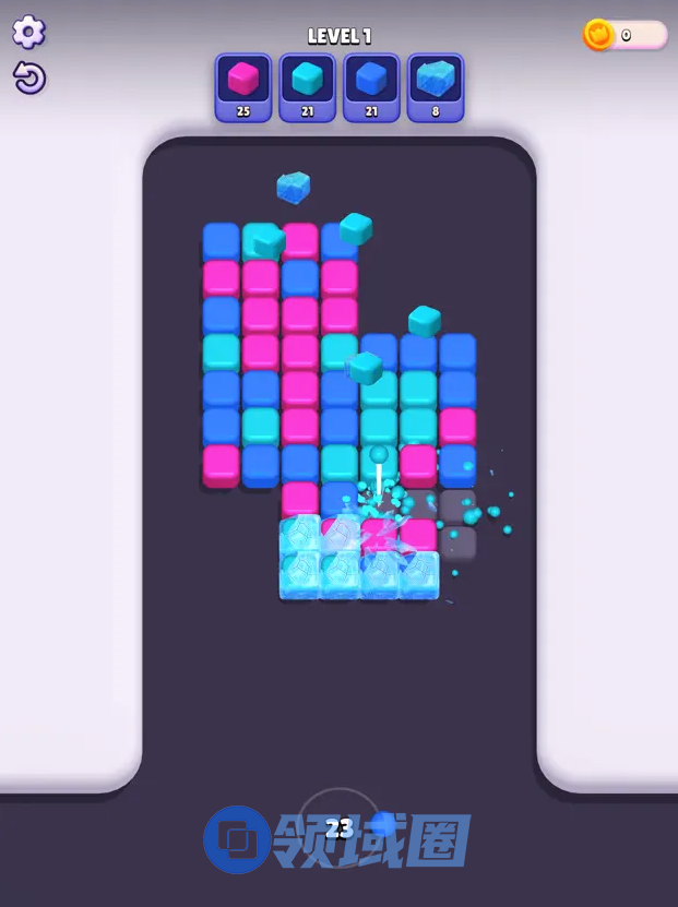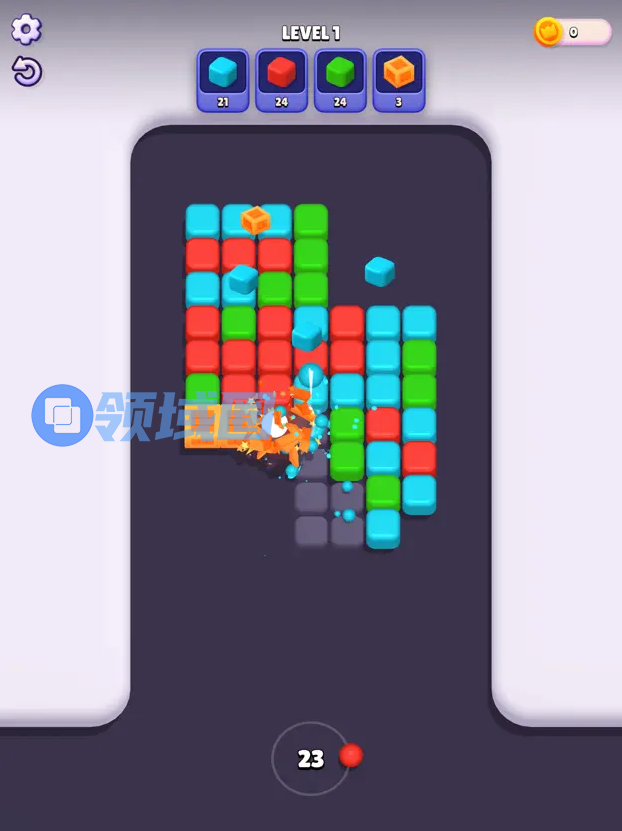 介绍:用各色小球,通过折射或者直接发射,与同色小球进行消除,消除后小球会继续跳跃消除其他相连的同色小球。可以看出是想做的更爽更有意思,但是受到了实现和动效的限制做成了这样,但已经算挺爽快的小超休闲玩法了。