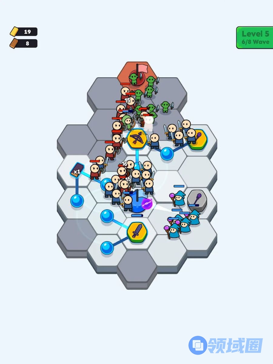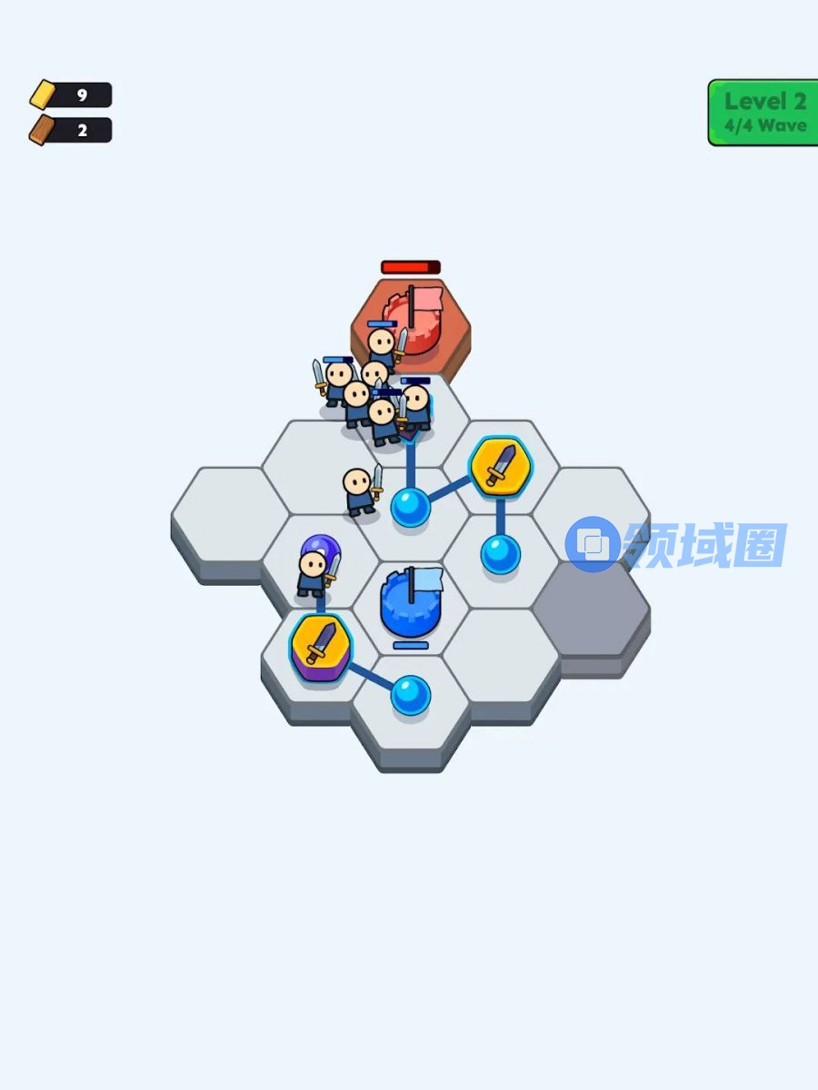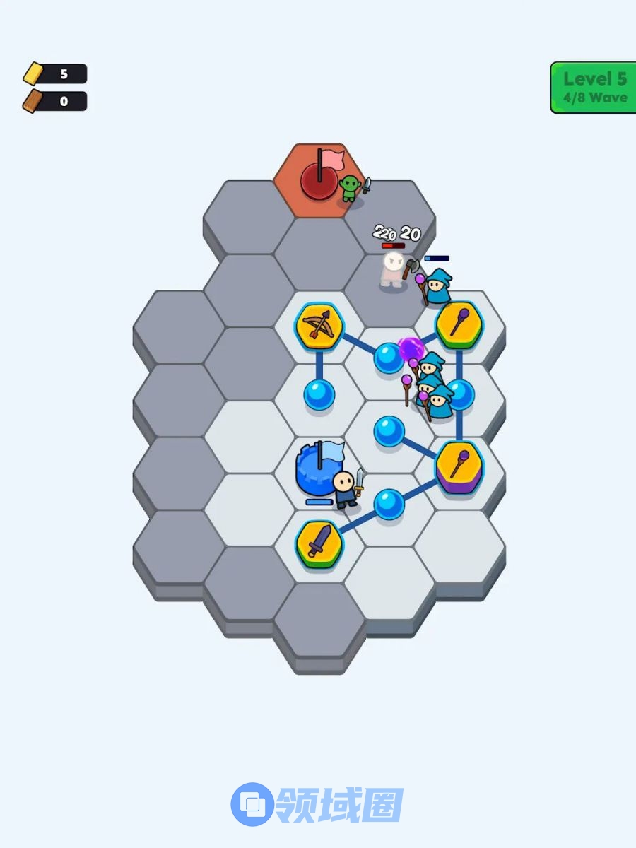 介绍:Hex现在好像成了一个很靠谱的题材了,如果没想到啥表现,大家都用六边形来摆一摆试一试。这款游戏用的是六边形的毗邻地块的玩法,1块格子通过六边形链接可以与6个周围各自相接壤,在这些格子中可以有造兵格子、资源格子、基地格子。然后玩家放置“农民”采资源+造兵,然后抵御敌人之后用获得的钱扩张边界或者升级各种建筑,围绕着六边形的玩法延伸出了一个很简单的RTS玩法。不过没什么实时操作,说是SLG也行。