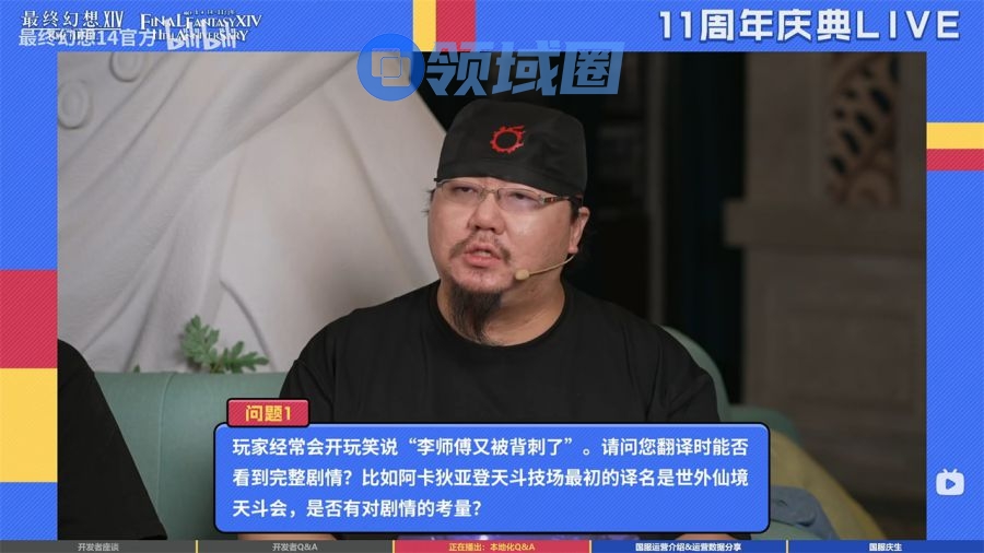 而在国服本地化答问环节,《FF14》中文本地化主管李丰欣更是直面了此前玩家关于阿卡狄亚登天斗技场的本地化争议问题,给到了十分具有说服力的依据和回答。而玩家们在得知背后的秘辛后,也是刷起了一排排“李师傅辛苦了”的弹幕表示理解,对本地化工作的艰辛与不易有了更深刻的体会。