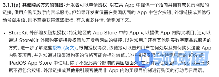 随即苹果公司更新 App Store 审查指南,并通过邮件通知开发者:即日起在美国市场,开发者可以在应用程序内自由嵌入按钮、外部链接或其他引导性模块,引导用户至第三方支付渠道。
