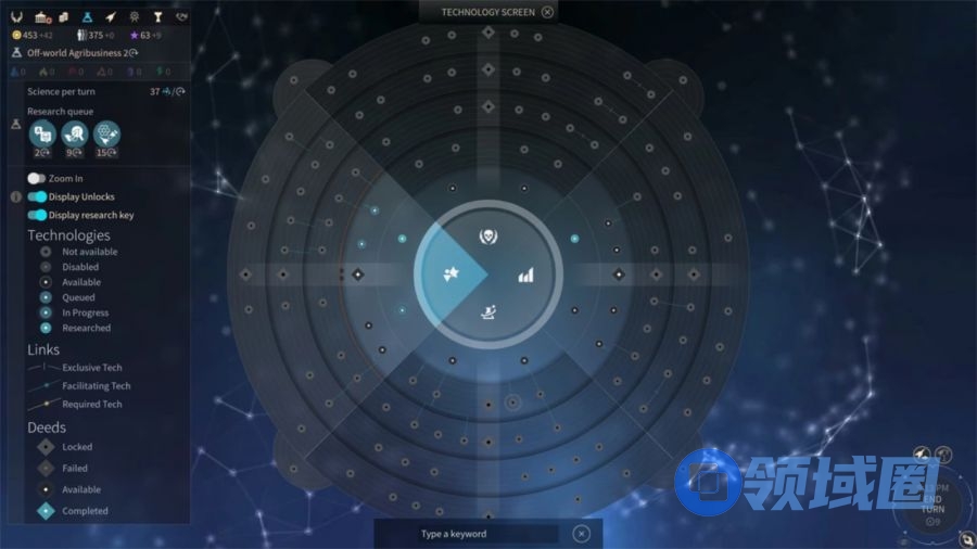 无尽空间: 采用环状科技树结构,科技之间存在多重前置与互通关系,构成高度网状的组合路线。