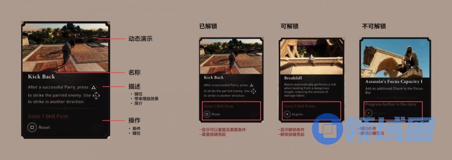 “节点卡片”本质是 技能树的“决策界面”,它要把价值、条件、状态和视觉反馈浓缩到一个浮层里。