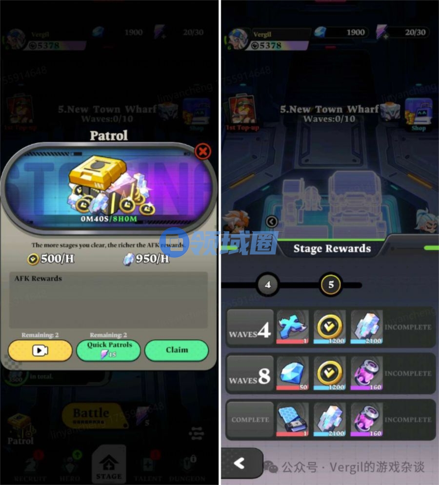 - 配套有挂机系统,可消耗15体力 / 看广告扫荡