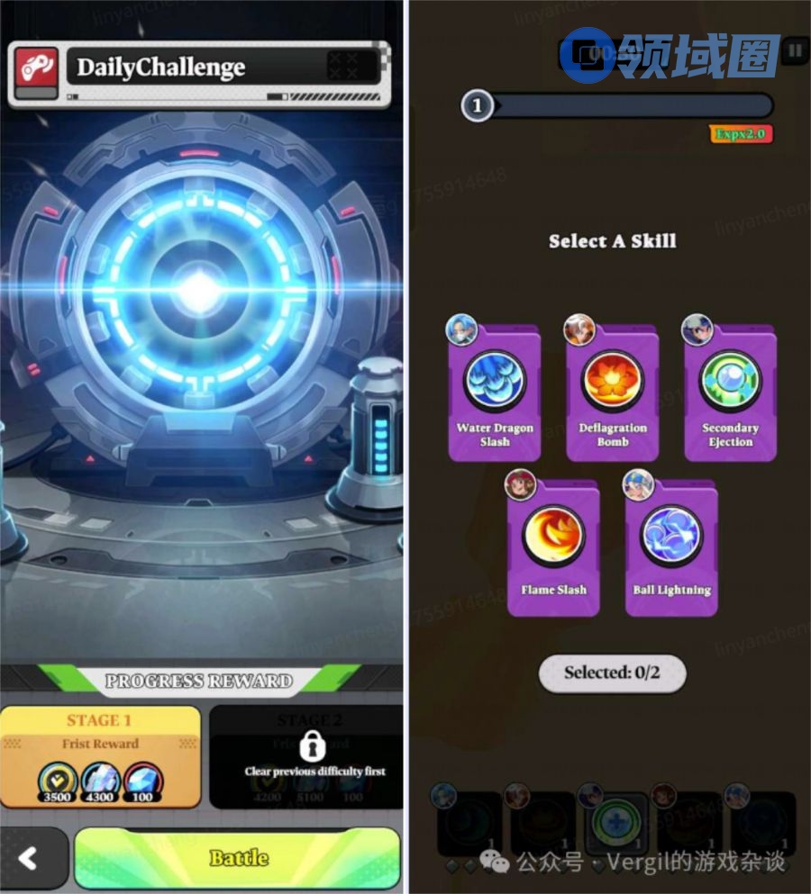 - 升级技能:底色为白,下方有黄色小豆,性能略低于普通技能,但英雄升级三次后技能池会解锁觉醒技能和进阶技能,从“为未来投资”的角度应该优先选择