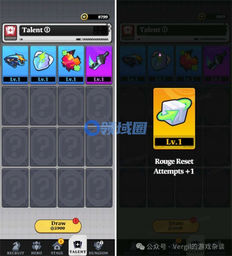 - 消耗金币进行一次抽卡,随机解锁 / 升级一项天赋
