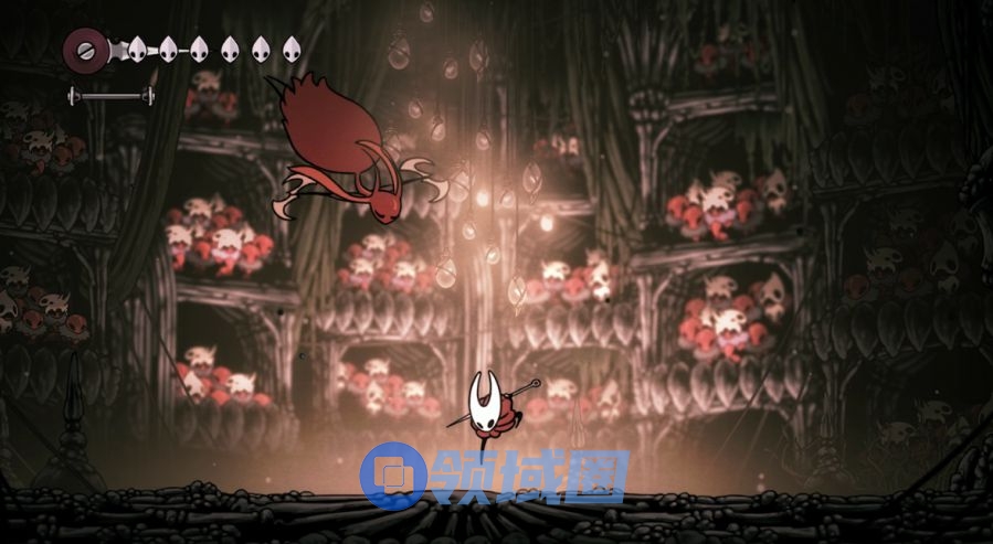 (Christopher Larkin)为《空洞骑士》创作的激昂管弦乐简单,但这款游戏对合成弦乐的使用,以及在惊悚与宁静之间的平衡,也会让玩家感到熟悉。《饥饿骑士》的战斗也有着鲜明的樱桃社特色,与《空洞骑士》非常相似。