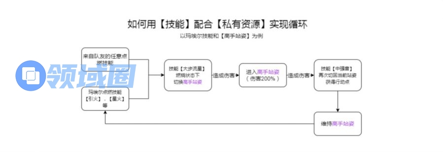 玛埃尔的技能【大步流星】可以在敌人处于燃烧状态时,让自身切换到高收益的“高手站姿”。这就鼓励玩家思考如何通过队友的【着火】技能进行预先铺垫,打出漂亮的配合。同时,【中强音】这类技能又能让玩家维持当前站姿,为战术的延续提供了可能。游戏中类似的组合数不胜数,足以看出制作组对于不同战斗资源相互配合的的巧思。