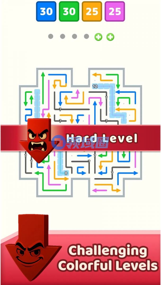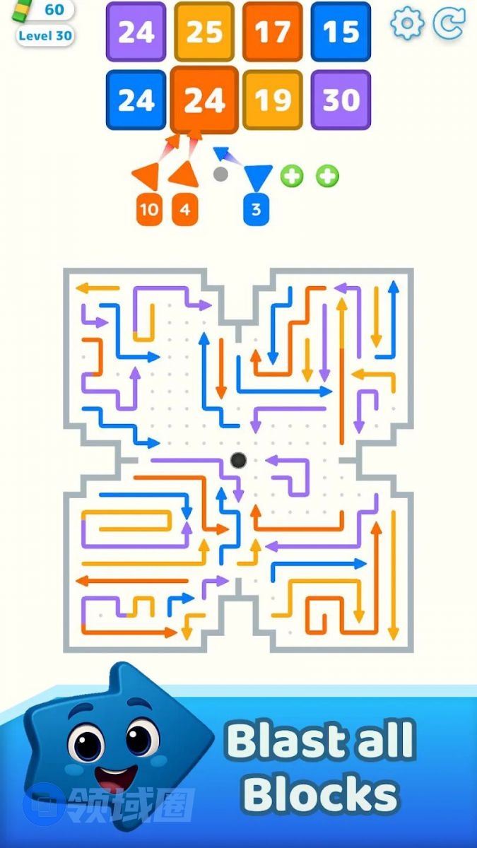 介绍:最近箭头类题材的游戏变多了,除了Tap Arrow玩法之外,这一款也算比较新颖的一种组合方式,整体是Voodoo的《This is Blast》玩法,但下方的选择方块机制改为了Arrow贪吃蛇的玩法,点击各种长度和方向的箭头,然后箭头进入黑洞,传送到上方的炮台上去消除对应颜色的方块,底部的箭头摆放稍微有点益智和迷宫的玩法规则,但是“长度”的计算上稍微有点抽象,其他的我觉得算是不错的想法创新了。