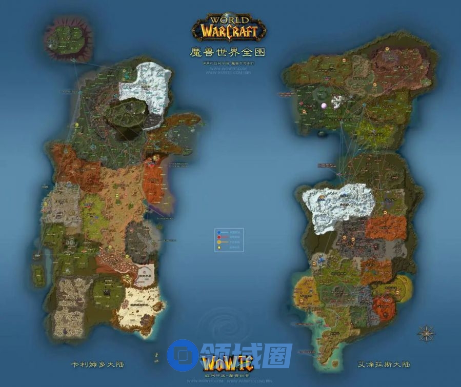 此时的两个新种族仍旧没有被强制限定在新手村中,他们仍旧可以跨越地区前往其他的新手村进行任务。但两张延展地图的设计证明暴雪希望玩家能够更长地留在同一片大区域继续完成任务,而非跨越地图。同时,两个新手区域与其他地图的通达性也略有降低,尤其是孤悬海外的秘蓝岛。