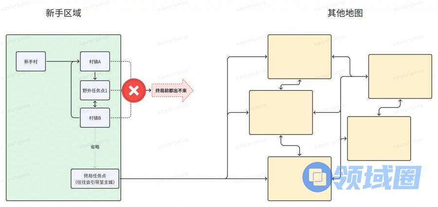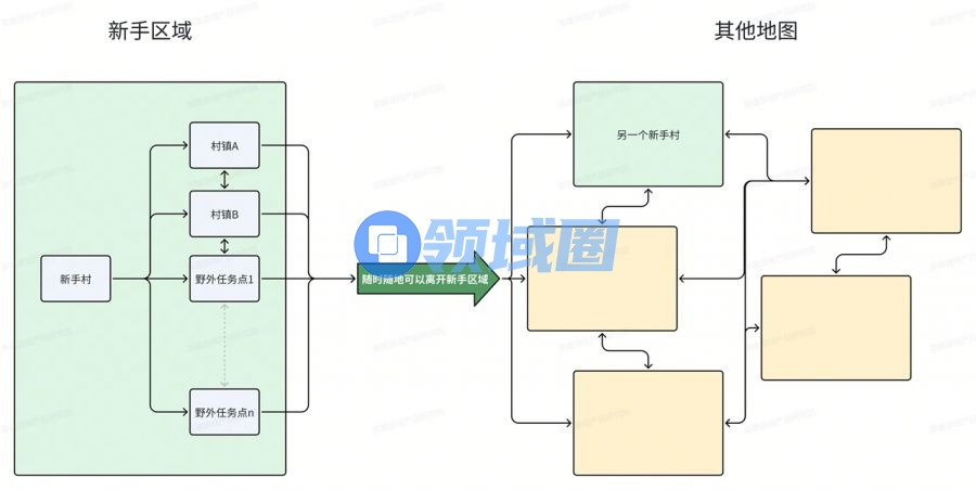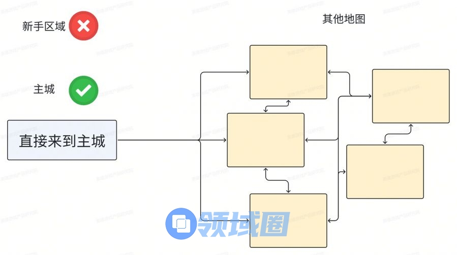 此时的新手村干脆连各个城镇之间互相跑的环节都去掉了,完全变成了线性化: