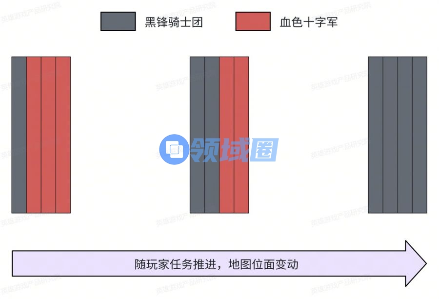 以死亡骑士的新手区域为例,玩家在初来乍到时血色十字军的战线是在阿彻鲁斯脚下的,但伴随着任务的线性推进,战线会先推进到新阿瓦隆,接着再被玩家从后方渗透,最终整片区域都屈服于天灾军团的“淫威”。而在此期间,处在不同阶段的玩家便会进入不同的“位面”,无法再看见彼此。