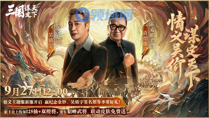 9月27日,《三国:谋定天下》开启“情义主题服”,新服新主公上线领125抽+双橙将,更有貂蝉武将、联动皮肤免费送!同时参与新服活动,主公还有机会赢取纪念金钞、吴镇字签名照等多重好礼!同时,游戏携手吴镇宇联合打造限定专属纪念品,在所有服务器活动中送出,以献给认真对待每一场战斗的主公们!
