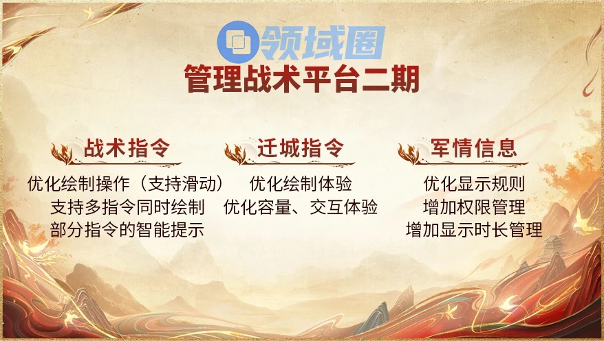 为营造更公平的竞技环境和更轻松的游戏环境,《三国:谋定天下》还将开展生态净化行动,治理违规团控,逐步落实限制和处罚机制并覆盖所有区服。同时开启降肝减负2.0时代,对预约攻城、自动铺路、以及同盟管理战术平台的战术、迁城指令等操作进行进一步减负优化,帮助主公更丝滑指挥战局!