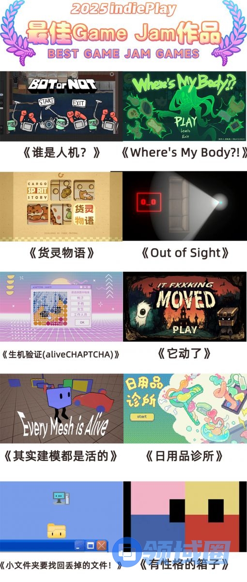 2025 indiePlay各奖项入围名单如下(排名不分先后):