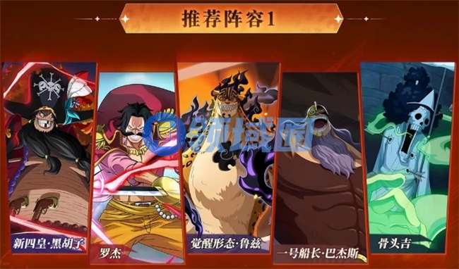 阵容一:新四皇·黑胡子 + 罗杰 + 觉醒形态·鲁兹 + 一号船长·巴杰斯 + 骨头吉