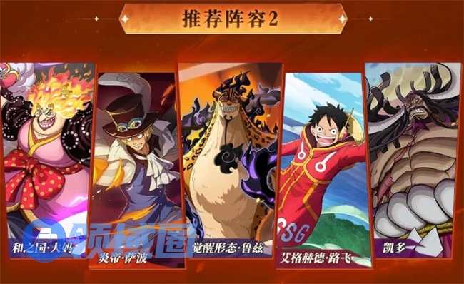 阵容二:和之国·大妈 + 炎帝·萨波 + 觉醒形态·鲁兹 + 艾格赫徳·路飞 + 凯多
