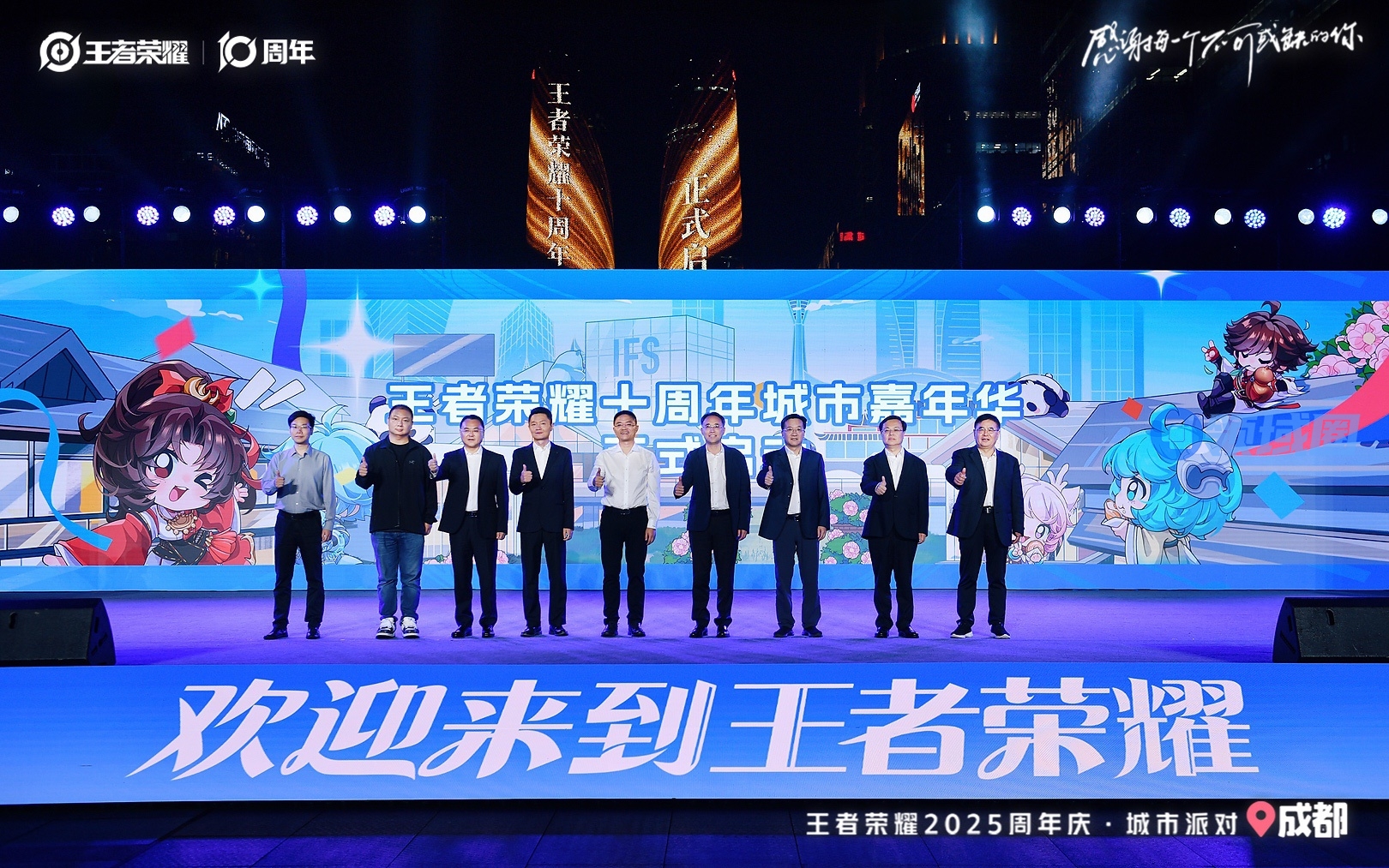 随着嘉宾们共同点亮光柱,“王者荣耀”十周年城市嘉年华正式启幕。