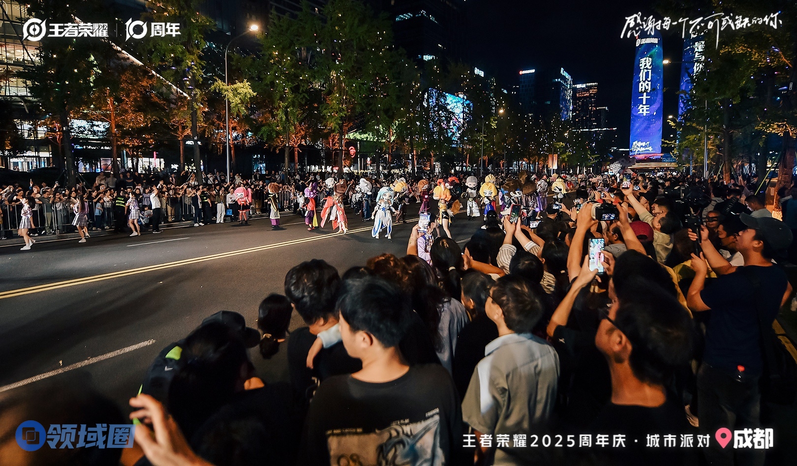 光影交织点亮蓉城夜空,COSER巡游重温荣耀十年路