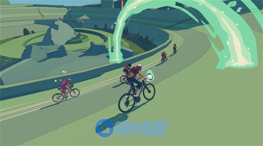 “我们希望构建一个有城镇、乡村,以及大量探索空间的广阔开放世界。因此,我们绝不能用一堆库存素材拼凑场景,而是把这项任务交给了一支小型美术团队,让他们营造栩栩如生,令玩家印象深刻的游戏场景。”埃辛说,“《车轮世界》塑造了一个平行宇宙,在那里,生死都围绕自行车展开……我们的视觉灵感来源于古老的环法自行车赛海报,以及20世纪初期的旅行海报,那些海报采用粗线条的手绘轮廓,造型相当大胆。与此同时,我们还参考了法国漫画家墨比斯的漫画、美国画家约翰·辛格·萨金特的风景画,英国艺术家大卫·霍克尼的作品,还有波普艺术。当然,《街头涂鸦》(Jet Set Radio)之类的其他游戏也令我们受到了启发。”