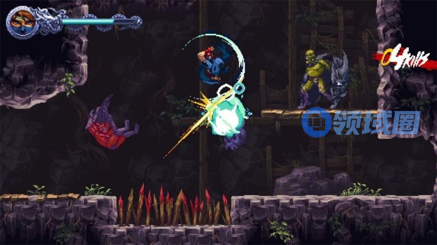 例如《超级忍:反攻的斩击》设计了两套冲刺模组——传统冲刺用来起手与跑酷,腾旋冲刺用来调整身位与衔接连招。