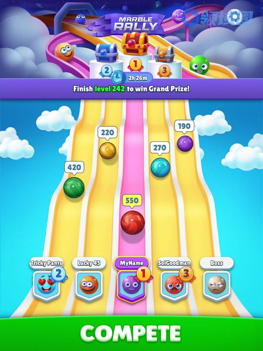 介绍:Tripledot出品,Jam玩法,就是把各种摆在关卡中的各色棋子按照规则(通常是相同颜色),3个一起摆在下方的槽中。这款有点不一样的是采用了弹球包装题材,有点像80-90后们小时候玩的沙地弹珠,在海外也有个大类型叫“Marble Rally”,把一大堆弹珠放在一长段人工制作的道路中,最后看哪个球先到终点的玩法。