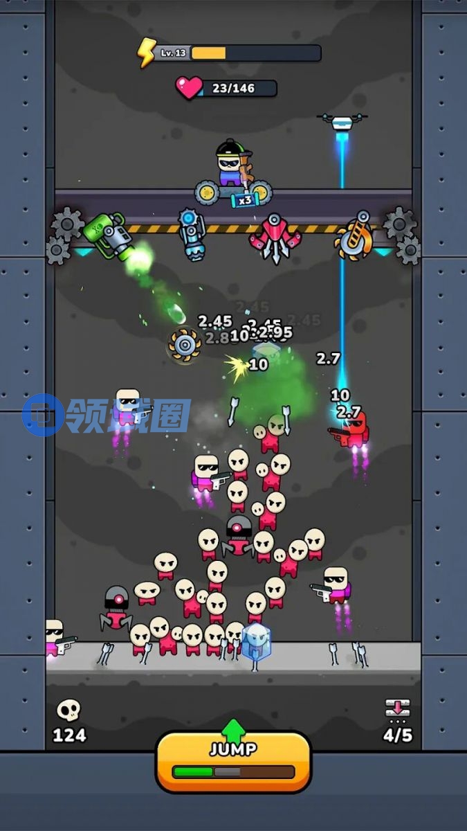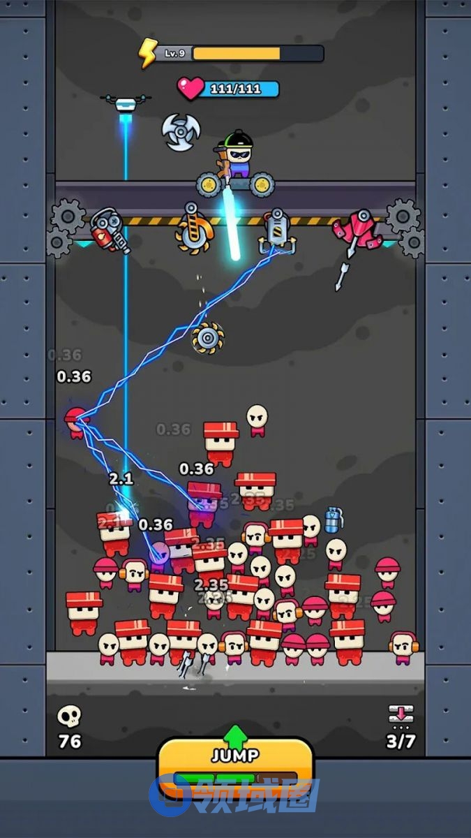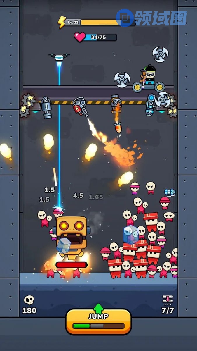 介绍:DDDigger的画风是挖地机+一层层挖土的表现与包装,这款则是把挖地机换成了一个钢筋台子,挖土和地里的各种东西则换成了一堆敌人,当敌人数量足够多的时候,他们会叠罗汉在一起,形成一定的高度,达到对玩家造成伤害的效果。