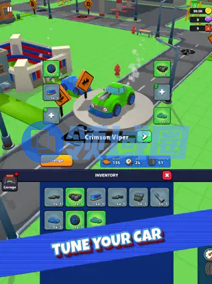 介绍:来自Rollic,玩法上就是MonopolyGO的基本玩法,要骰子在棋盘上转圈,在各个位置触发各种交互。这款主要是在表现上做了创新,除了把骰子换成了档把做换挡之外,玩家的属性也变成了发动机、加速、操控的属性,也有基础的改装车avatar、骰子转到某些位置的时候会用对应的属性去跟NPC播一段赛车表现,每张地图的boss也是赛车来完成。