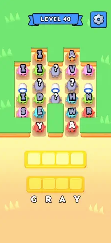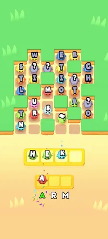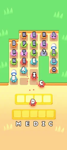 介绍:底部出现各种单词,然后从上方棋盘中的各个字母中选择对应字母拼成单词放入下方,同色的字母应该是有用的,但是实际玩起来,至少中前期的关卡还是比较简单。另外由于一直要看下面的单词和缺了什么字,所以注意力一直在上下来回走,有点奇怪。
