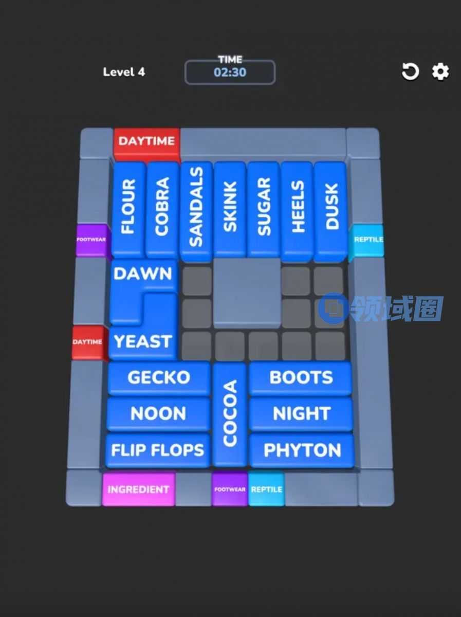 介绍:看一眼就能理解的玩法创新,利用Color Block Jam的规则和玩法,把砖块和出口改成了单词和类型的表现,类似最近时间很火的 Word Association归类玩法,需要把单词中同一类型的砖块在对应出口挪出。比如天气、食物、乐器、颜色等等……