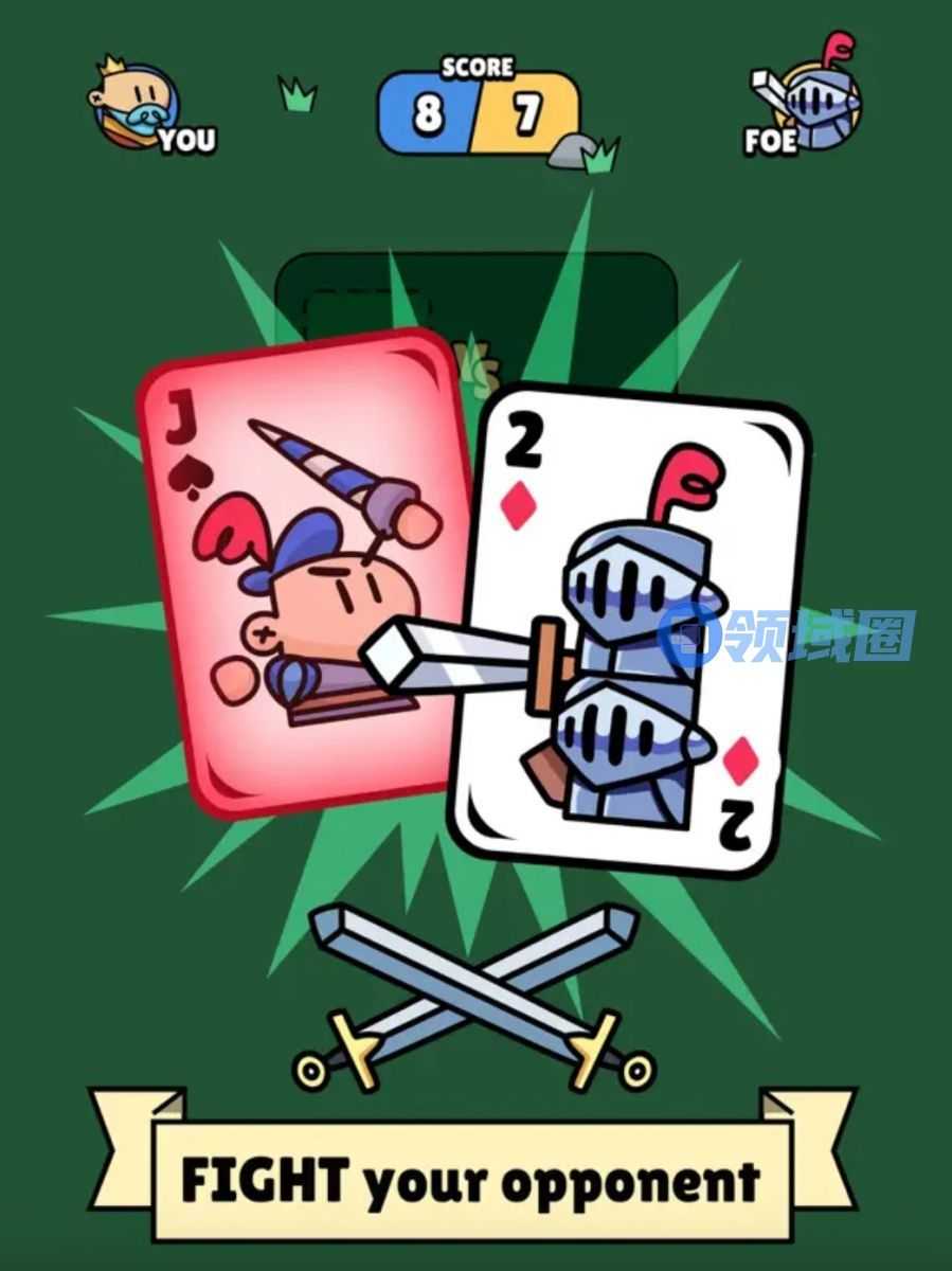 介绍:Crazylabs新品,左右双方选择一张牌比大小,进行多轮比赛,最终累计得分先达到目标即获胜。额外增加一个规则是牌是好几摞堆叠在场上的,所以玩家可以根据未来的牌型排兵布阵,适当选择放弃哪些牌型进行策略选择。