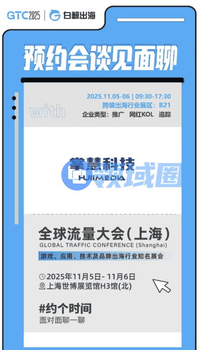未来,掌慧科技HuiiMedia将继续以全球视野、创新产品与深度服务,助力更多中国品牌实现“从走出去到走进去”的战略跃迁。我们诚邀各位行业同仁,于2025年11月5–6日莅临GTC 2025全球流量大会(上海)【B21展位】,共话全球增长新趋势,见证出海营销的智能未来。