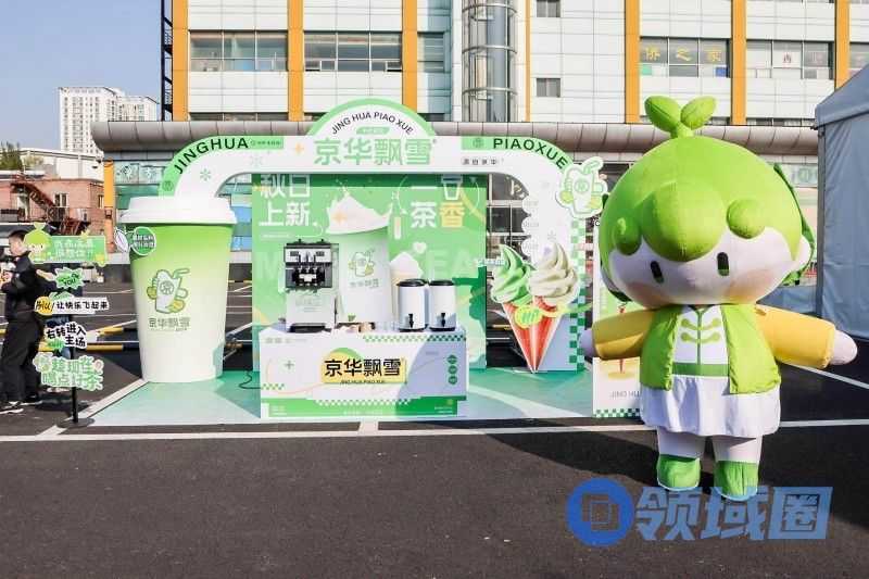 (活动现场“京华飘雪”茶饮体验区及“京小华”IP形象互动人偶)