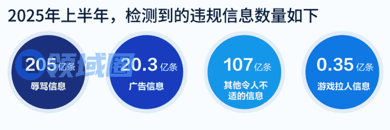 2025年上半年,腾讯游戏安全检测到的辱骂信息205亿条,而其他令人不适的信息为107亿条,广告信息20.3亿条。