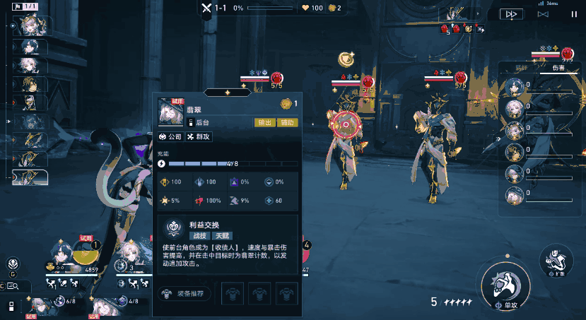 说其门槛低,并不是一句虚言。“货币战争”的战斗逻辑非常简单,所有角色都有“前后排”的站位区分,并由此进入星铁的经典回合制战斗环节。前排角色将会由玩家直接操控,直面敌人奋勇杀敌,而如翡翠等后排角色则可以根据自己的角色天赋被动战斗,并为战斗赋予增益效果。