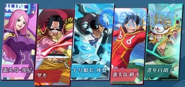 推荐阵容二:蛋头岛·邦尼+罗杰+十号船长·库赞+蛋头岛·路飞+青年白胡子。这套组合爆发力十足,能快速建立优势。