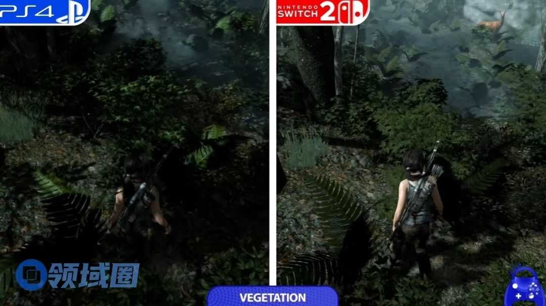 尽管Switch2凭借更强性能被寄予技术飞跃的厚望,实际表现却参差不齐。最显著的妥协体现在画面呈现:与PS4版直接对比,头发渲染、阴影质量、植被密度和全局光照均有所缩水。虽在树木布置上略有增补,但对整体观感提升有限。不过游戏性能表现稳健,实现了PS4版难以维持的稳定60帧运行。
