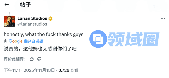 拉瑞安负责人Swen Vinke曾表示,频繁的奖项颁发让团队难以感受到项目的收官阶段。对此,游戏官方X账号对提名作出回应,表示:“再次被提名对我们来说是一种荣誉,这项提名见证了大家对《博德之门3》的持续热情和投入。”同时,拉瑞安官方账号也以简短方式表达了团队的心情:“说真的,搞什么啊?!谢谢大家。”