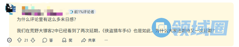 不过,也有玩家表示:“评论区怎么就一片恐慌?此前《荒野大镖客2》已经经历过两次延期,《GTA6》也是一样,为什么大家总期待会再延期?”——他们提到了R星之前的游戏也经历了两次延期,但最终获得了普遍好评,因此对《GTA6》保持乐观态度。