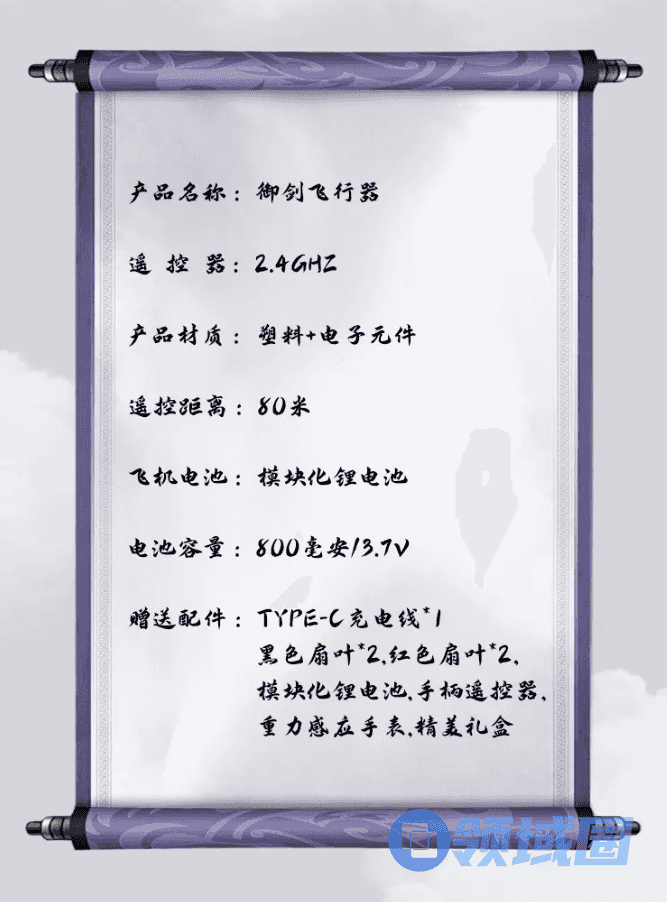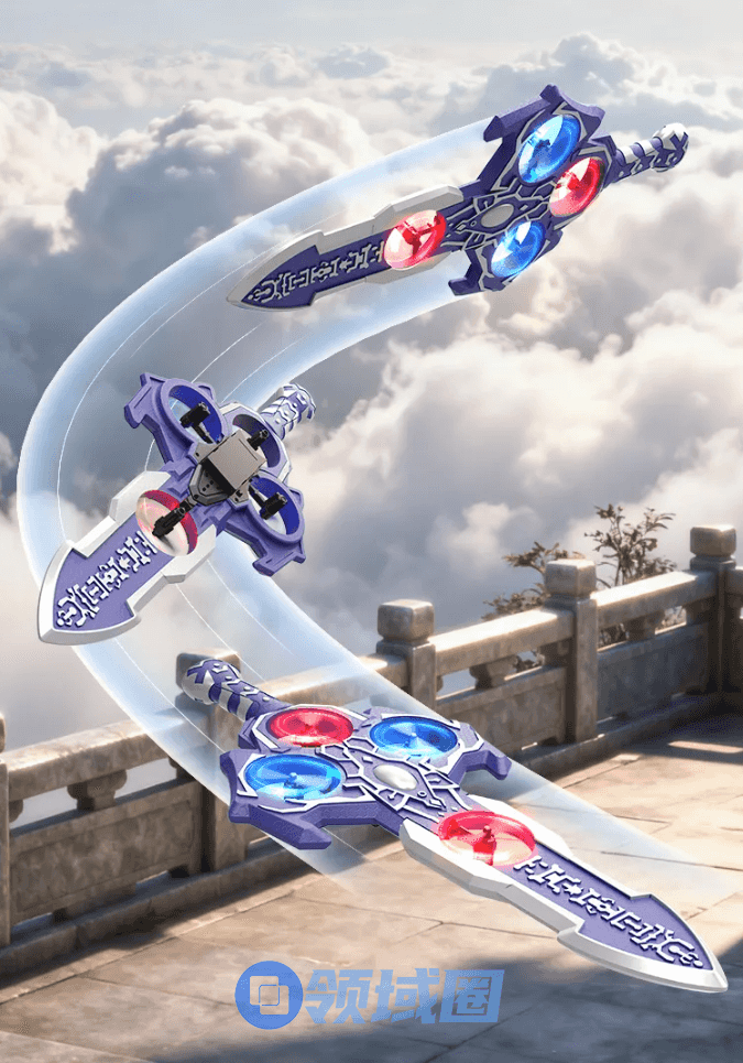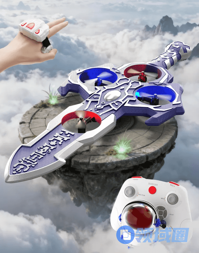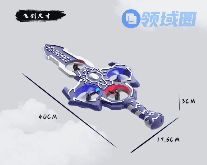 这款飞行器其实就是特殊形态的无人机,精准复刻《仙剑奇侠传三》中魔剑的经典形态,紫色剑身镌刻古姜文字,长度40厘米。其采用四个机翼结构,模块化锂电池,遥控距离可达80米,科技与侠气兼备。支持重力感应+手柄双遥控,快慢两挡可调,不但能控制前进方向,还可一键实现360度翻滚,支持“一键急停” 。