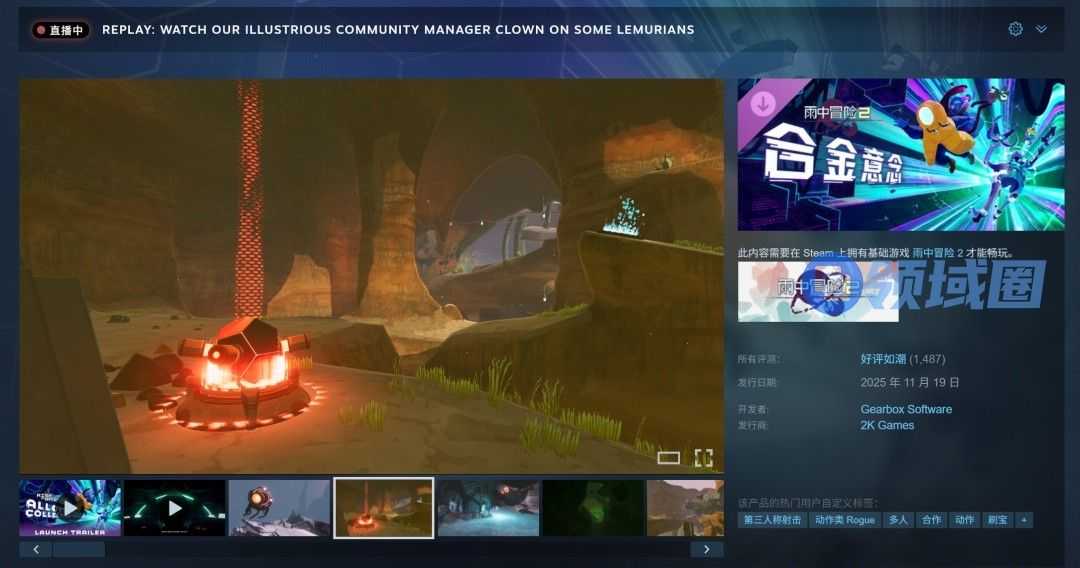 11月19日,发行商2K Games发布了roguelike动作游戏《雨中冒险2》的第三个DLC “合金意念”(Alloyed Collective)。
