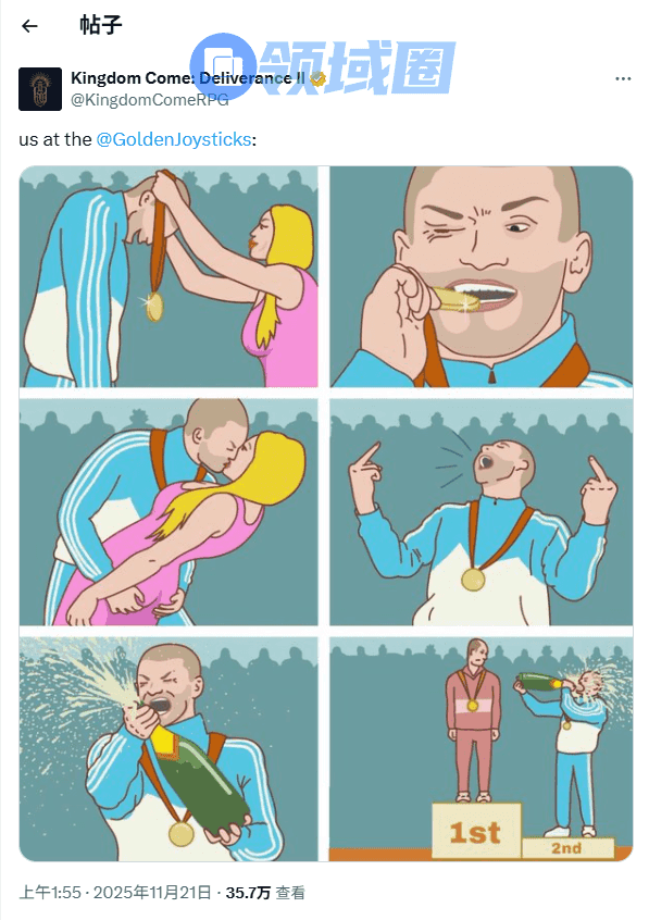对此,《天国:拯救2》官方在社交平台X上发布经典梗图自嘲: