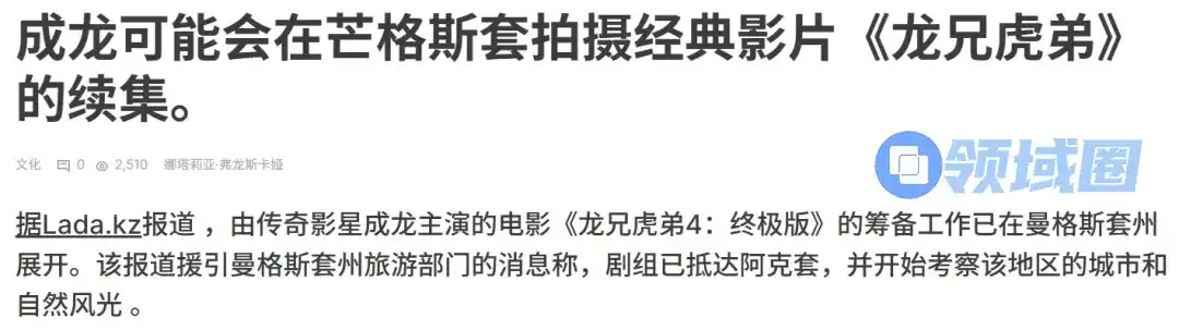 在与曼格斯套州州长的会晤中,双方就项目实施的配套支持措施与统筹方案进行了商讨。若影片最终获批,这将是该地区首次亮相由成龙主演的大成本国际动作片。