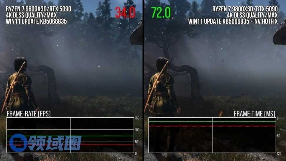 而国外专业测评机构数毛社(Digital Foundry)通过测试证实了该问题的存在。他们在一套配置为Ryzen 7 9800X3D与RTX 5090显卡的电脑上,前后测试了更新该版本的游戏性能以及更新该版本并安装本周英伟达热修复补丁后的游戏性能,发现游戏的性能帧数降幅达到了33%至50%。