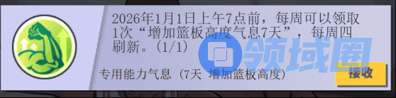 活动期间每周可以领取专用能力气息(7天增加篮板高度),让各位玩家的角色更加强力!