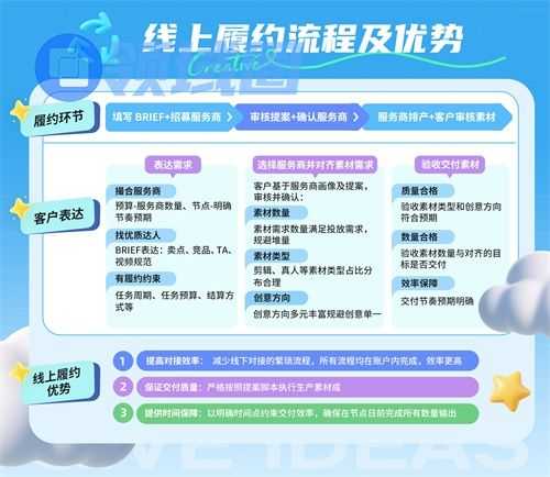 当下线上营销竞争日趋激烈,品牌与达人的合作早已成为主流推广方式,其中履约环节的效率与规范性,是影响创意落地质量的关键变量之一。传统线下履约模式中,服务商圈选模糊、提案沟通低效、素材迭代滞后等问题,往往让优质创意在执行中打折扣。而星广联投的线上履约体系,正通过全流程数字化改善这一现状。