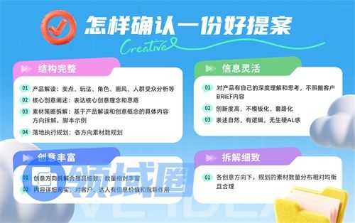 服务商提案的质量,是后续素材高质量交付的关键前置保障,其评估需聚焦 “结构完整、信息灵活、创意丰富、拆解细致” 四大核心标准。