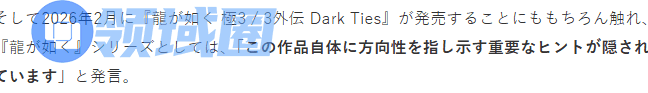 世嘉如龙工作室《如龙 极3 / 如龙3外传 Dark Ties(Yakuza Kiwami 3 & Dark Ties)》即将于2026年2月12日多平台发售,日前工作室负责人横山昌义在采访中透露,本座绝非普通的重制版,而是暗示着系列未来的走向。