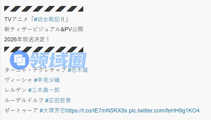经典动漫《幼女战记》TV动画第二季终于有了新进展,11月28日官方宣布已经确定2026年开播,距离2017年的第一季动画时隔8年回归,敬请期待。