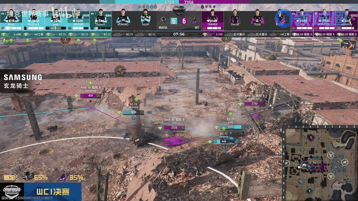 在这决定冠军归属的最终战场上,MAFIA与HIT AND RUN均已倾尽所有,战术、操作、意志力都经受着终极考验。在激烈的交火中,MAFIA抓住了对方140工程的细小走位失误,失去140工程的鼓舞加成后,AMX50福熙B被延长的长装填真空期成为了HIT AND RUN整个战术体系中的“阿喀琉斯之踵”。MAFIA立即发现了这一命门,凭借更胜一筹的集火效率和临场决策,成功遏制了HIT AND RUN弹夹体系的第二轮攻势!